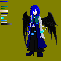 ふーむ。ババ様宅のパソ子じゃ普通に見えたけど、黒子で見るともうちょっと袖の色濃くしてもよかったかな。でもって翼の内側の羽をもうちっとくっきりさせりゃよかった。